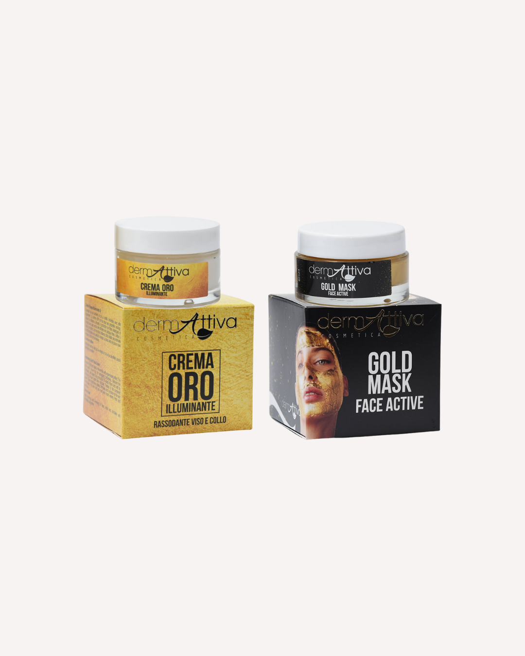 La Maschera Gold illumina e rivitalizza il viso, stimolando il rinnovamento cutaneo e restituendo immediata luminosità.